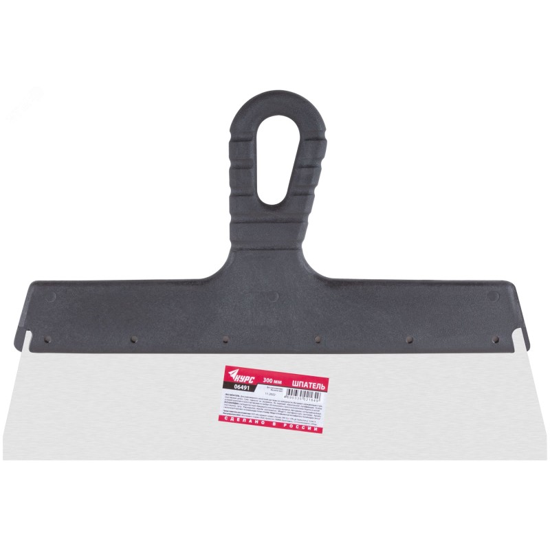 Шпатель фасадный КУРСРОС предназначен для шпатлевки, ремонта трещин, выравнивания потолка и стен, очищения поверхности от старых обоев и краски, нанесение плиточного клея, грунтования. Широкое лезвие изготовлено из нержавеющей стали и обладает высокой износостойкостью. Шпатель оснащен эргономичной пластиковой рукояткой, которая удобно лежит в руке и позволяет работать длительное время без перерывов.