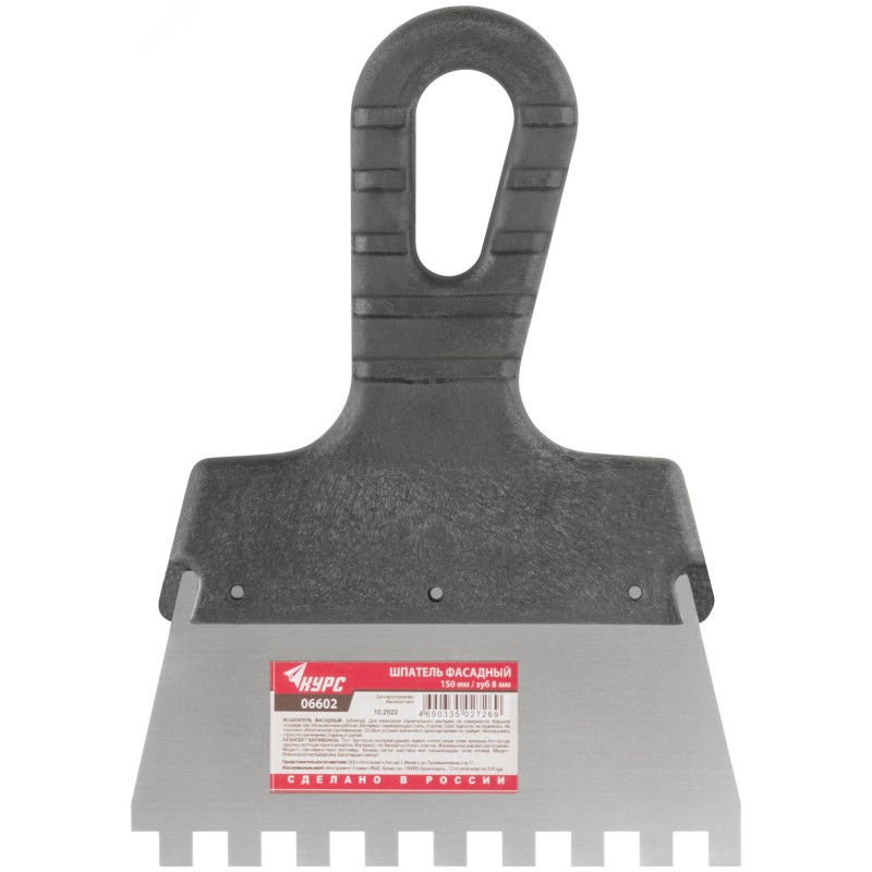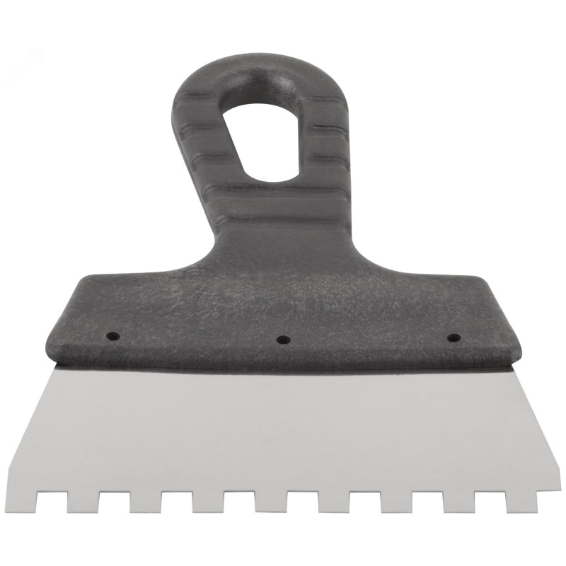 - Преимущества:полотно сочетает в себе баланс гибкости и прочности|полотно не подвержено коррозии|зубчатая кромка полотна способствует равномерному нанесению составов на поверхность|оптимален для работ с большими площадями|эргономичная пластиковая ручка обеспечивает надежный хват|отверстие в ручке для хранения и сушки