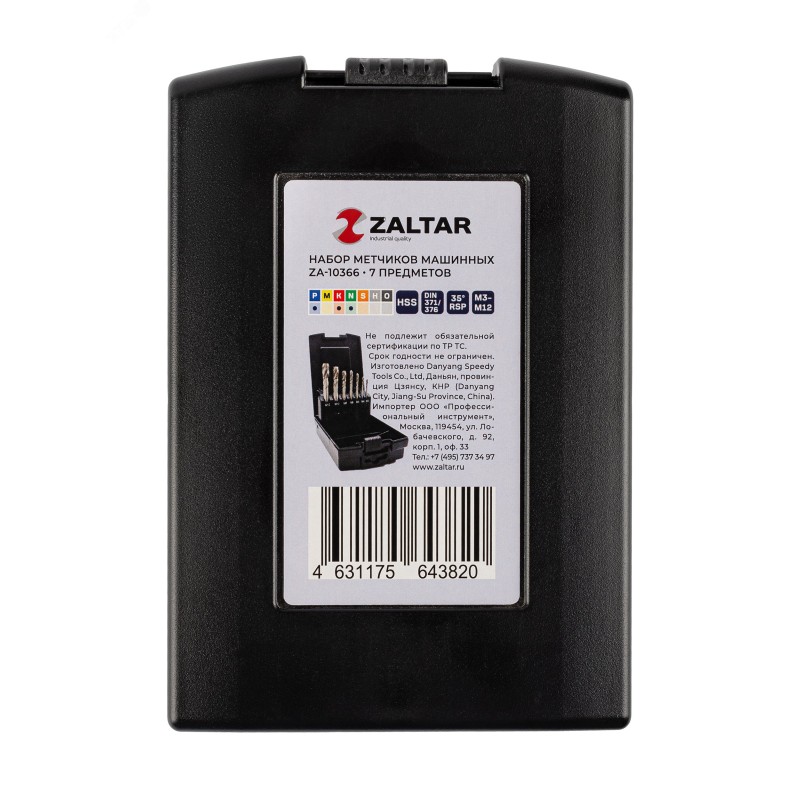 - Дополнительная информация:количество в наборе, шт - 7|технический стандарт - DIN 371 и DIN 376|материал - HSS|тип резьбы - M - метрическая|размер резьбы - M3 / M4 / M5 / M6 / M8 / M10 / M12|допуск - 6H|направление резьбы - правое|угол резьбы - 60 градусов|тип машинного метчика - 35 градусов RSP|тип стружечной канавки - винтовой|для глухих отверстий