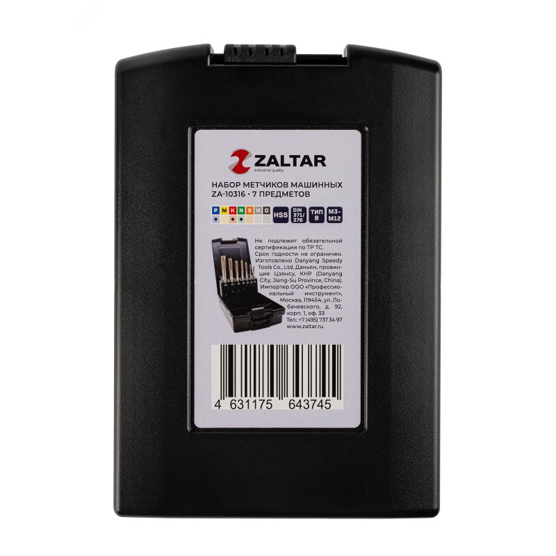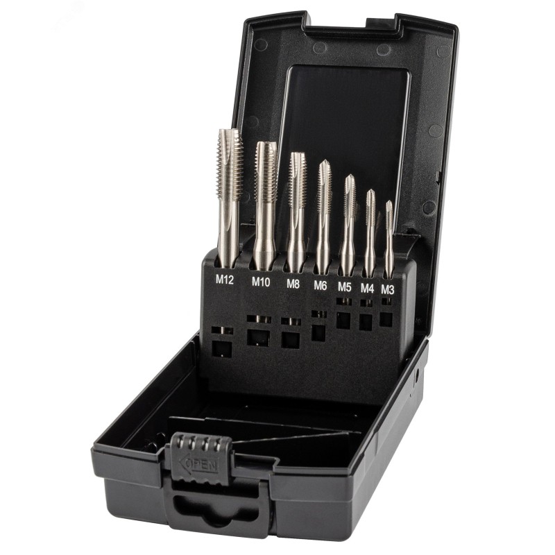 - Дополнительная информация:количество в наборе, шт - 7|технический стандарт - DIN 371 и DIN 376|материал - HSS|тип резьбы - M - метрическая|размер резьбы - M3 / M4 / M5 / M6 / M8 / M10 / M12|допуск - 6H|направление резьбы - правое|угол резьбы - 60 градусов|тип машинного метчика - тип B|тип стружечной канавки - прямой|для сквозных отверстий