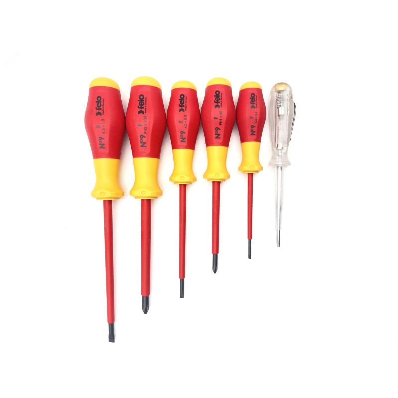 - Комплектация:Отвертки VDE SL: 2,5 x 75 / 4,0 x 100 / 5,5 x 125, VDE PH 1 x 80 / PH 2 x 100, Отвертка тестер напряжения сети.