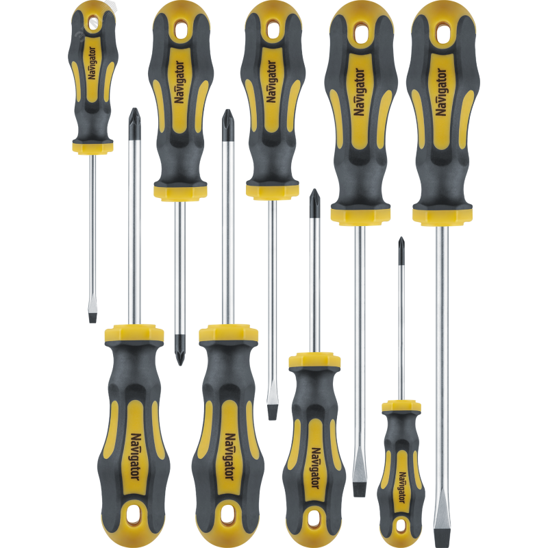 - Преимущества:Стержни из хром-ванадиевой стали, твердость закалки 51 HRC|Антикоррозионное защитное покрытие стали|Закаленные намагниченные наконечники|Противоскользящие рукоятки, устойчивые к воздействию химикатов и растворителей