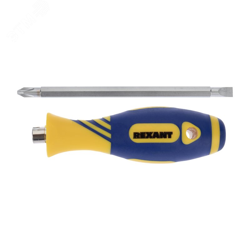 - Преимущества:Металлические части инструмента обладают высокой прочностью|Удобные двухкомпонентные противоскользящие рукоятки|Намагниченный наконечник отвертки надежно удерживает крепеж|Двухсторонний стержень эффективно заменяет 2 отвертки