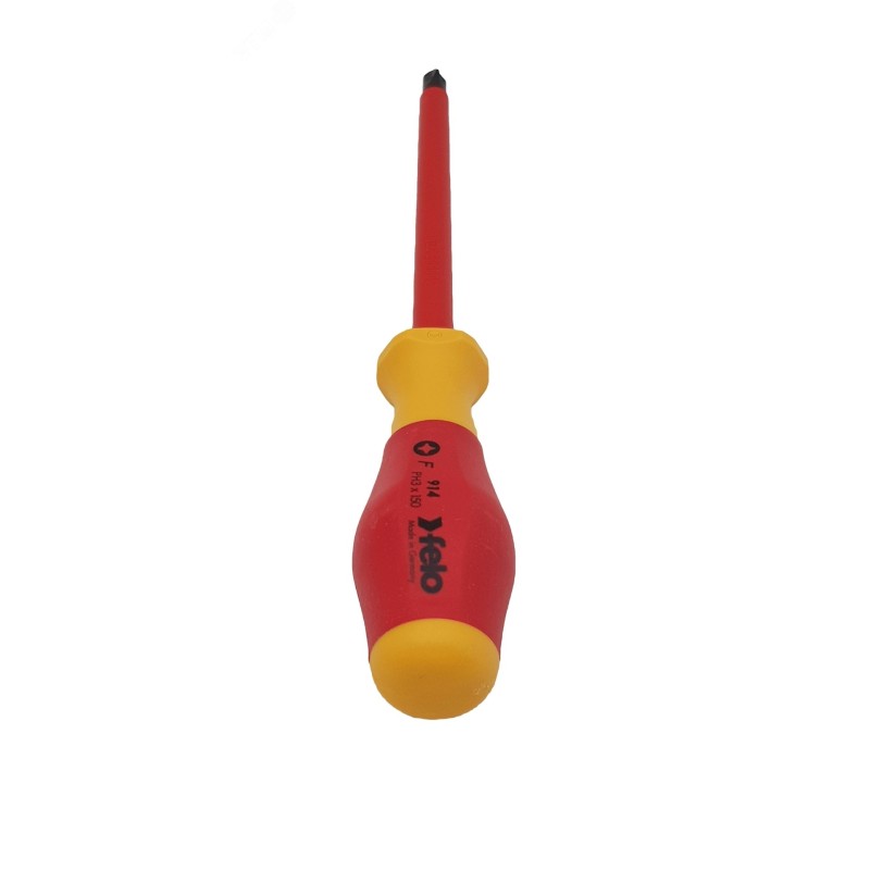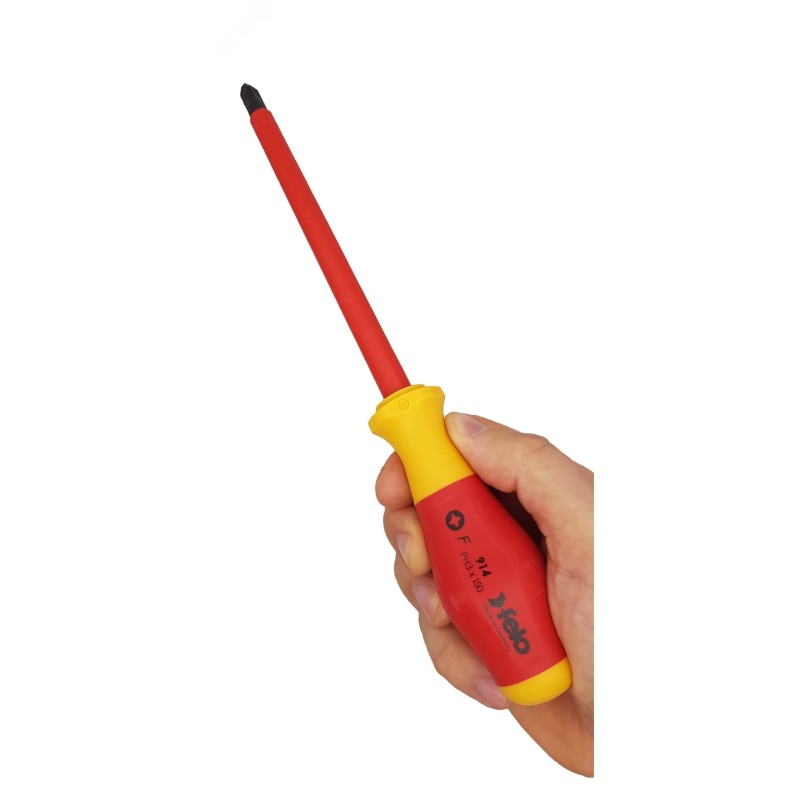 Отвертка диэлектрическая крестовая серии 900 предназначена для работ с крепежом PH3 под напряжением до 1000 В. Эргономичный дизайн рукоятки и противоскользящий материал (Soft Grip) помогает обеспечить наибольшую передачу усилия. Специальный дизайн двухкопонентной рукоятки не позволяет инструменту скатываться с поверхности. Лезвия изготовлены из специальной хромомолибден-ванадиевой стали для достижения наилучшего результата при работе! Точная посадка в крепеж обеспечивается за счет черного наконечника (Black-Tip).