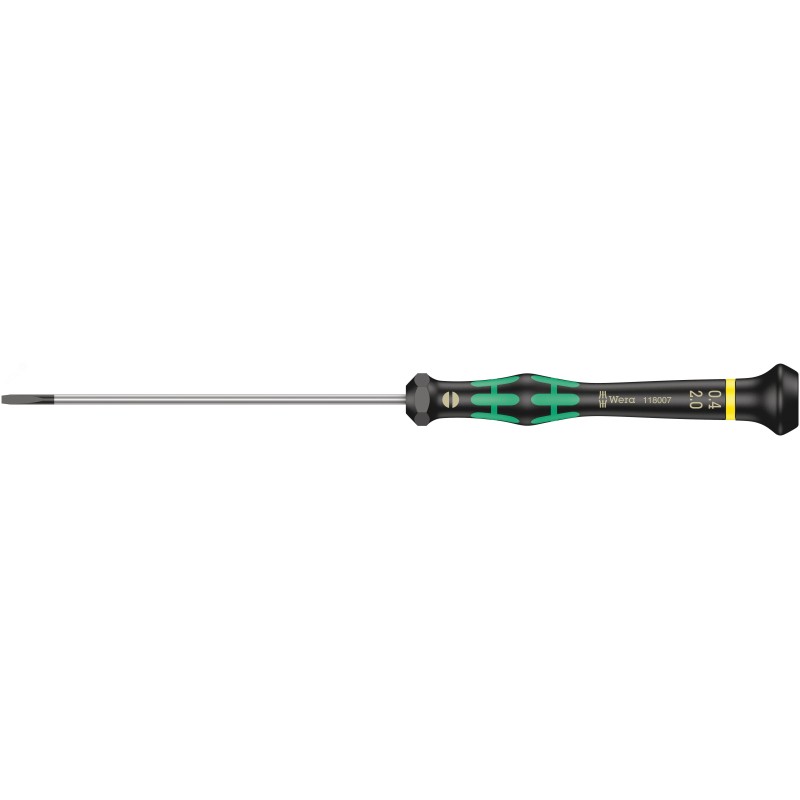 - Преимущества:Шлицевая отвёртка Kraftform Micro|Многокомпонентная ручка Kraftform Micro для быстрого и эргономичного завинчивания|С защитой от перекатывания и подвижной головкой для скоростного вращения|Наконечник Wera Black Point обеспечивает точность работы и оптимальную защиту от коррозии|С индикатором Take it easy - Цветовая маркировка профиля и гравировка размера