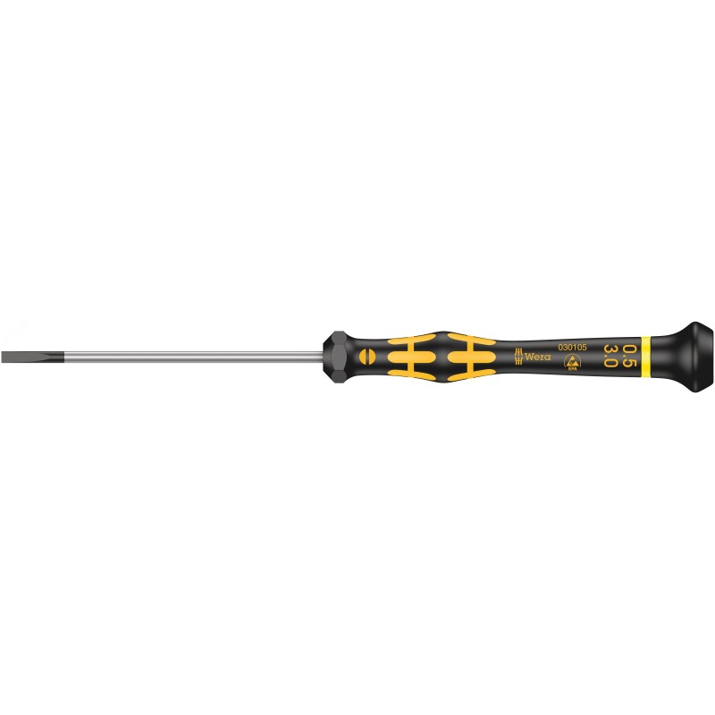 - Преимущества:Шлицевая отвёртка Kraftform Micro|Электростатически безопасный инструмент из-за поверхностного сопротивления 10 Ом|Многокомпонентная ручка Kraftform Micro для быстрого и эргономичного завинчивания|Наконечник Wera Black Point обеспечивает точность работы и оптимальную защиту от коррозии|С индикатором Take it easy - Цветовая маркировка профиля и гравировка размера