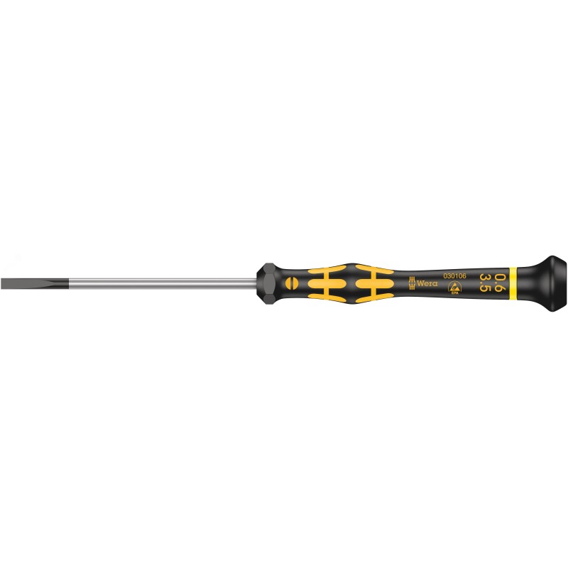 - Преимущества:Шлицевая отвёртка Kraftform Micro|Электростатически безопасный инструмент из-за поверхностного сопротивления 10 Ом|Многокомпонентная ручка Kraftform Micro для быстрого и эргономичного завинчивания|Наконечник Wera Black Point обеспечивает точность работы и оптимальную защиту от коррозии|С индикатором Take it easy - Цветовая маркировка профиля и гравировка размера
