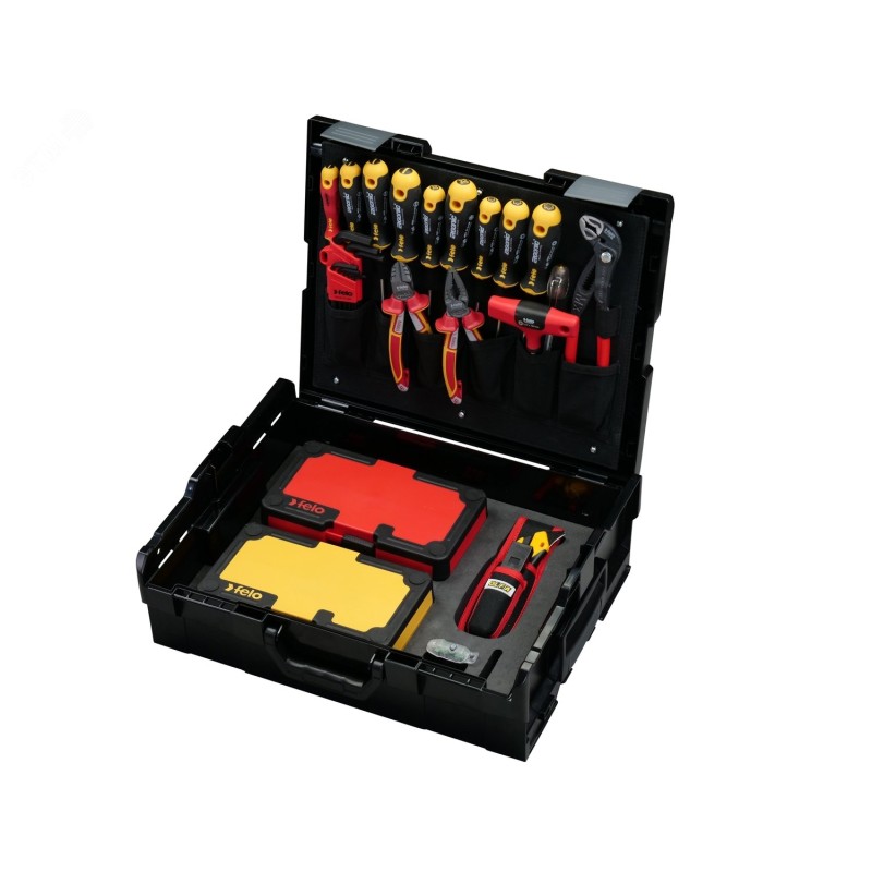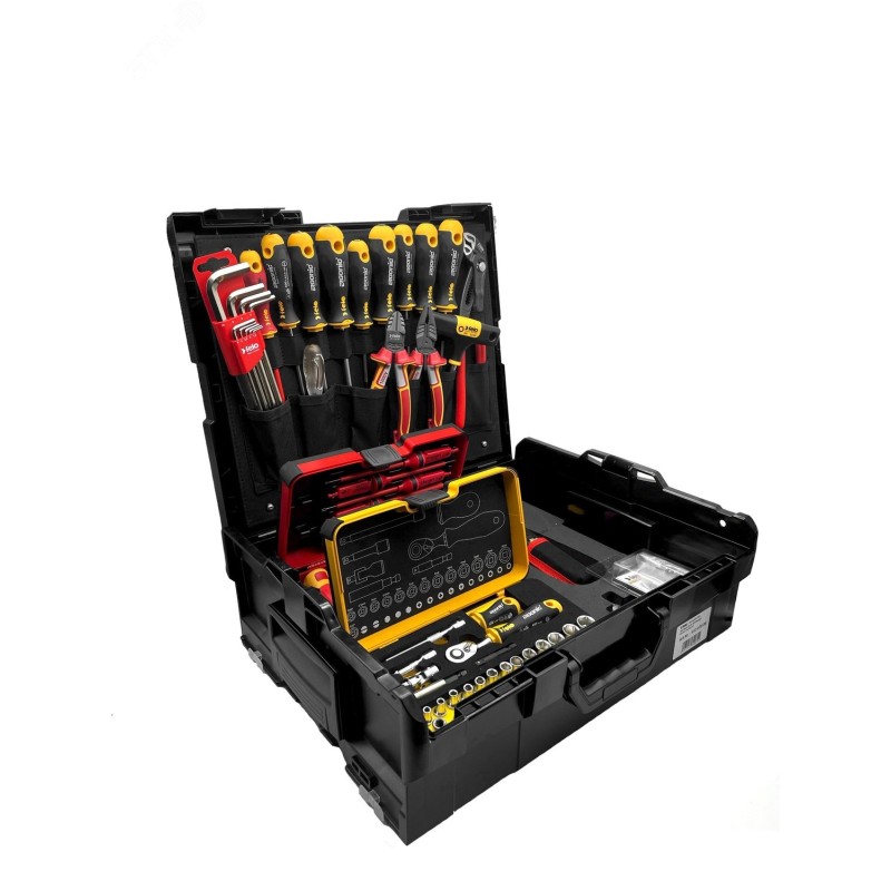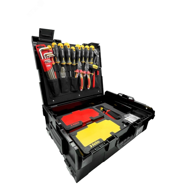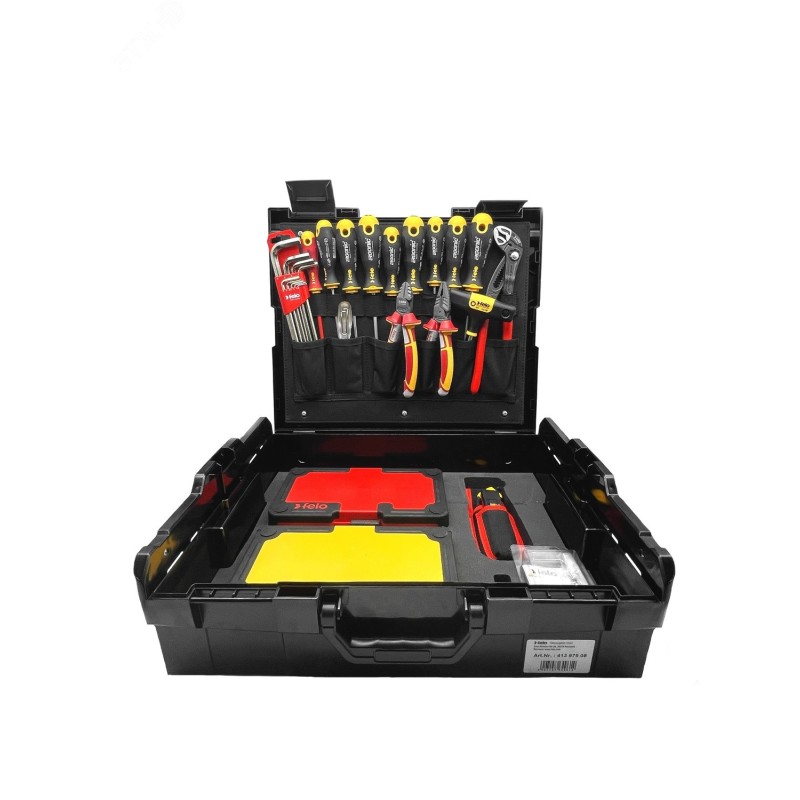 - Комплектация:Отвертки: SL 4,0 / 5,5 / 6,5 / PZ 1 / PZ 2 / Torx15 / Torx20 / Torx25, Отвертка VDE E-Slim SL 3,5, Отвертка-тестер сети SL 3,0 x 70, T-образная отвертка под биты 1/4'', VDE пассатижи180 мм, VDE бокорезы 160 мм, Тестер сети для ШГИ, Клещи переставные 250 мм, Набор шестигранных Г-образных ключей, 9 шт - 1,5/2,0/ 2,5/3,0/4,0/5,0/6,0/8,0/10,0мм, Кейс с диэлектрическим инструментом E-SMART (рукояткаE-SMART со сменными стержнями), Кейс с битами 25мм и мм головками, трещоткой и рукояткой ERGONIC, 36 предм., Чемодан с ручкой, пластиковый.