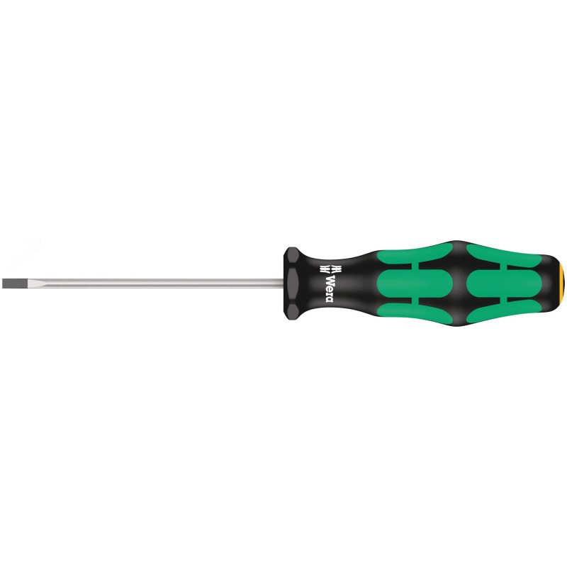 - Дополнительная информация:Винты со шлицем. Рабочий конец - круглый, матовый никель, наконечник Lasertip. Ручка Kraftform с защитой от перекатывания, многокомпонентная. Идентификаторы инструментов ''Take it easy'' цветовая кодировка профиля наконечника (желтый цвет - шлиц) и маркировка размера на ручке отвёртки. 0.4x2.5x75