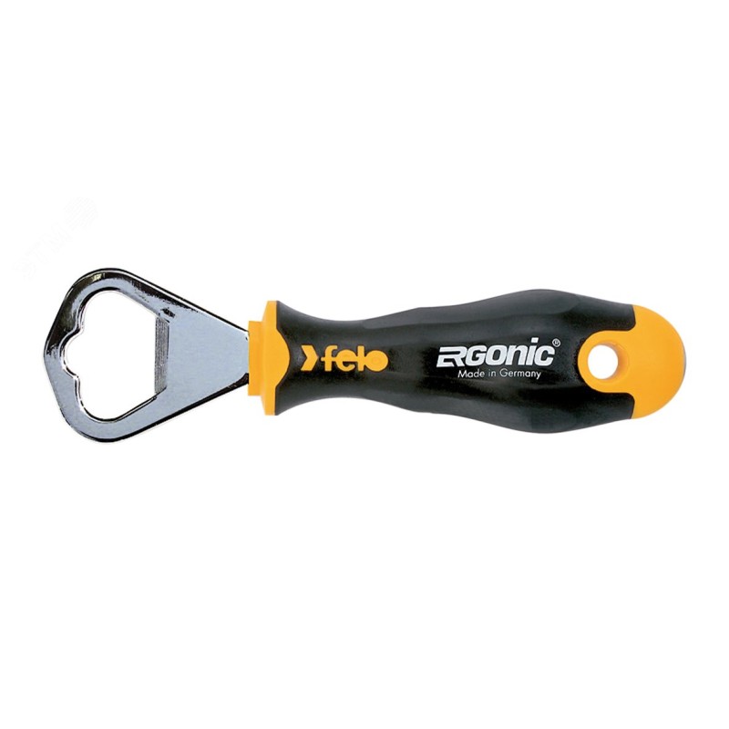 Открывашка Felo с рукояткой ERGONIC. ERGONIC – первая в мире рукоятка, выполненная по технологии 3-х компонентной ручки, которая адаптируется под руку пользователя. Максимальный комфорт обеспечивается бесшовной литой ручкой. Материал стержня открывашки - хром-молибден-ванадиевая сталь, износостойкость которой превышает технические требования DIN и ISO вдвое.