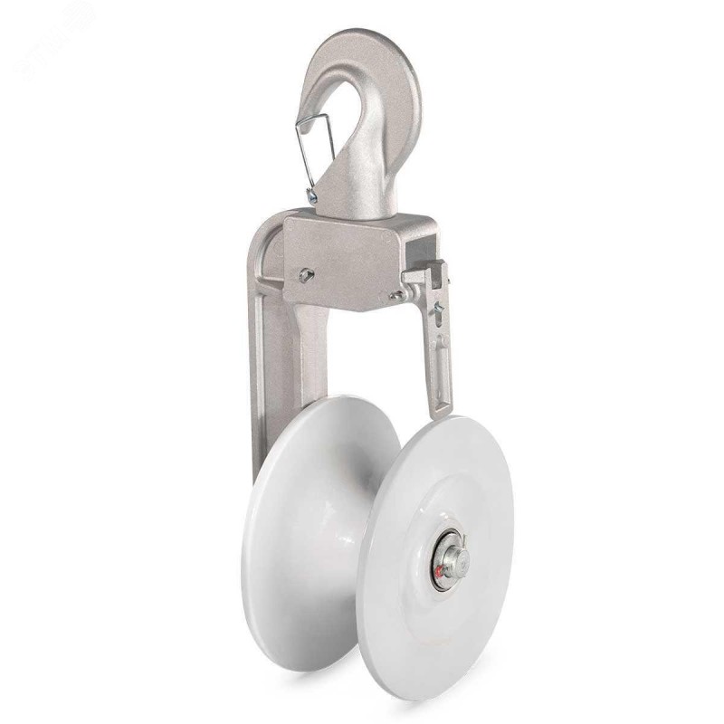Предназначен для воздушной прокладки самонесущих изолированных проводов (СИП) и оптоволоконного кабеля по опорам. Диск ролика и подвесной кронштейн из прочного и легкого алюминиевого сплава. Крепление на опоре осуществляется при помощи крюка с фиксатором. Максимальный диаметр кабеля – 50 мм. Максимальная нагрузка – 6 кН.