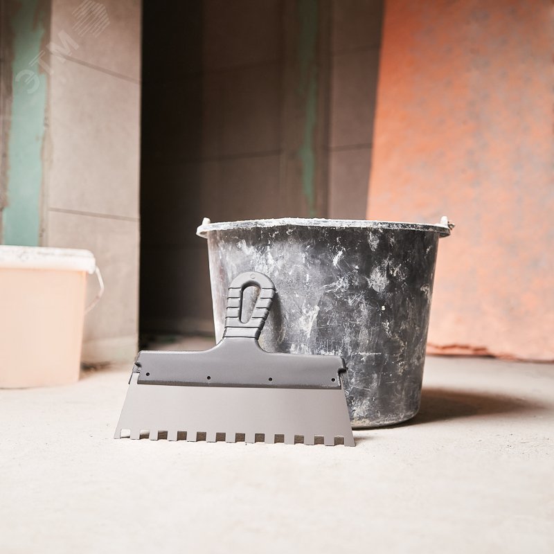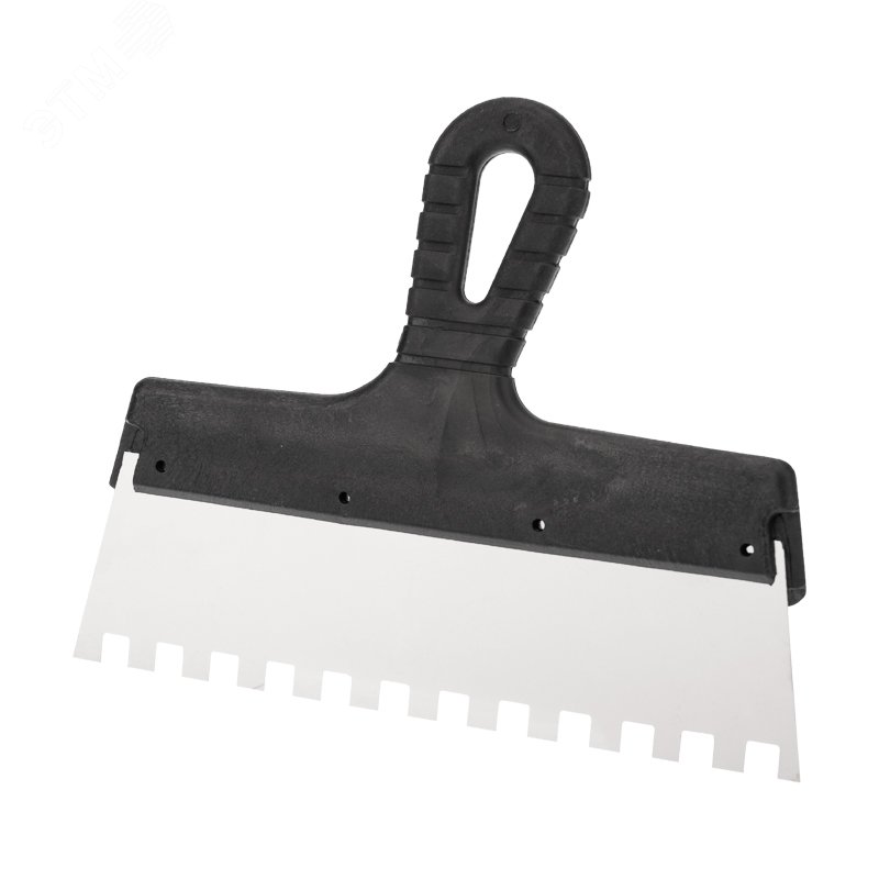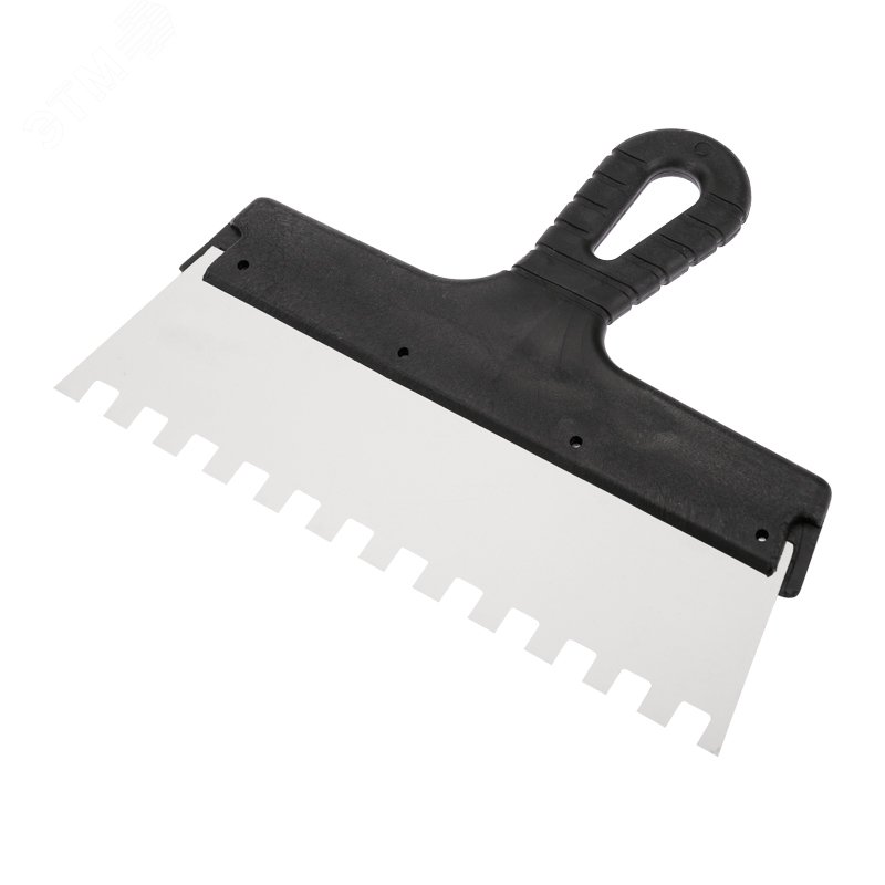 - Преимущества:Благодаря зубчатой кромке шпатель идеально подходит для работы со строительными и клеевыми смесями|Полотно из нержавеющей стали обеспечивает надежность и долгий срок службы инструмента|Удобная пластмассовая рукоятка создает условия для комфортной работы