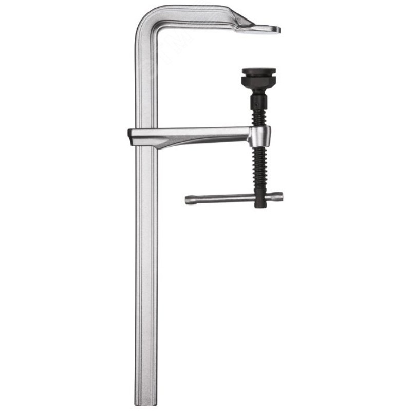 - Преимущества:Максимальная стабильность зажима|Кованая U-образная скользящая скоба формы из кованой улучшенной стали гарантирует высочайшую надёжность|Жароустойчивая опорная пластина с большой шаровой головкой внутри наклоняется до 35 градусов и может быть заменена|Винт улучшенного качества отличается стабильностью и устойчивостью к износу. Это увеличивает срок службы инструмента|Зажимное усилие до 12000Н с моментом затяжки 40Нм|Благодаря оптимированному профилю направляющей, зажимное усилие за оборот увеличилось на 20%|Высочайшая надёжность за счёт линейной передачи усилий на подвижной скобе