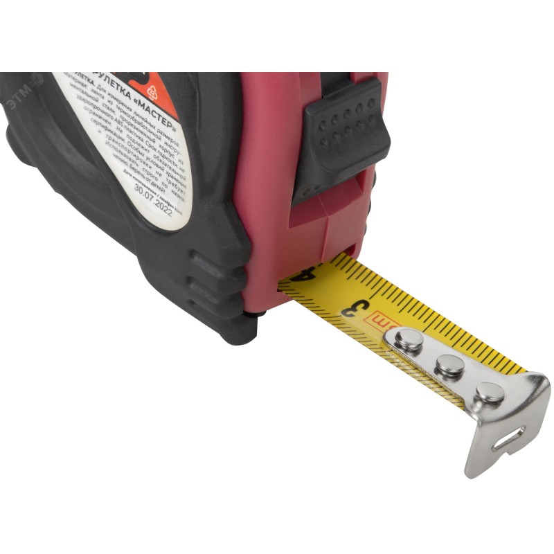 - Преимущества:Крупный размер нанесенной шкалы упрощает считывание показаний|Подвижность зацепа повышает точность измерений|Корпус рулетки изготовлен из ударопрочного abs пластика, устойчивого к механическим воздействиям|Резиновые накладки на корпусе предотвращают повреждения инструмента при падении или ударе|Полимерное покрытие ленты защищает от истирания и коррозии|Рулетку возможно крепить на ремне с помощью металлической клипсы|Резиновый ремешок позволяет носить рулетку на руку или хранить в подвешенном положении
