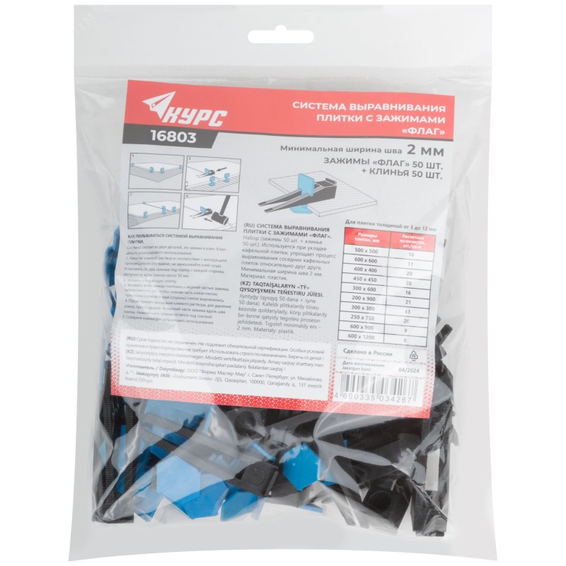 Система выравнивания кафельной плитки с зажимами ''Флаг''. Используется при укладке кафельной плитки, упрощает процесс выравнивания соседних кафельных плиток относительно друг друга. Минимальная ширина шва 2 мм. Материал – пластик. Упаковка – п/э пакет с подвесом.