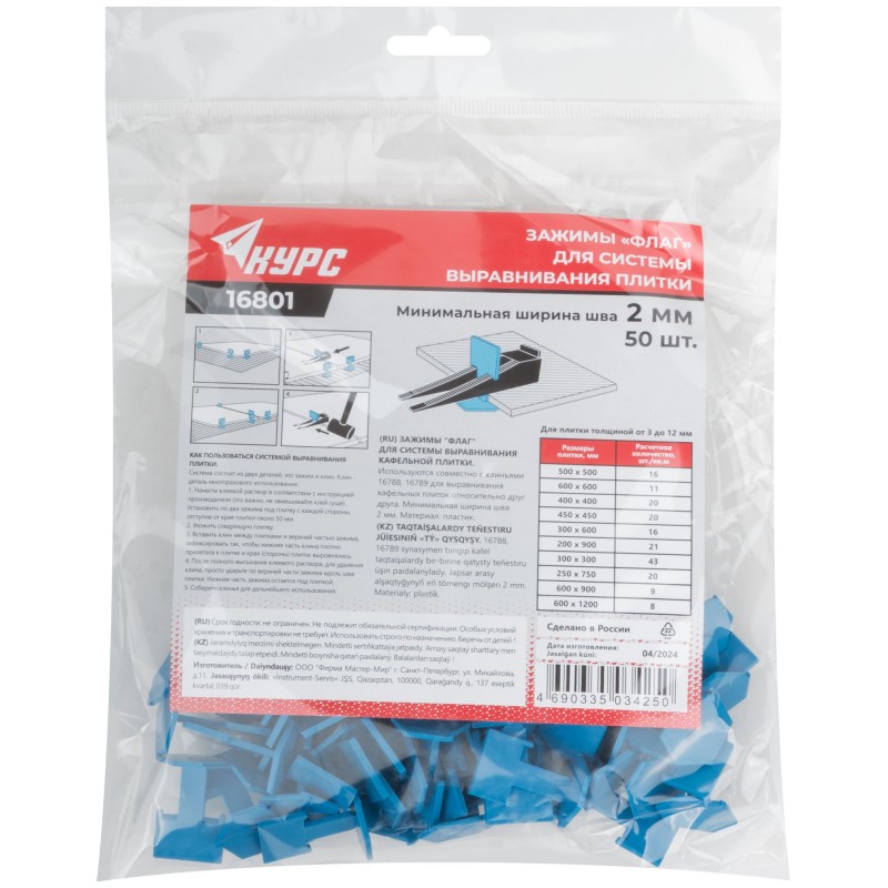 Система Выравнивания Плитки СВП, Зажимы Флаг 50 шт., ширина шва 2,0 мм