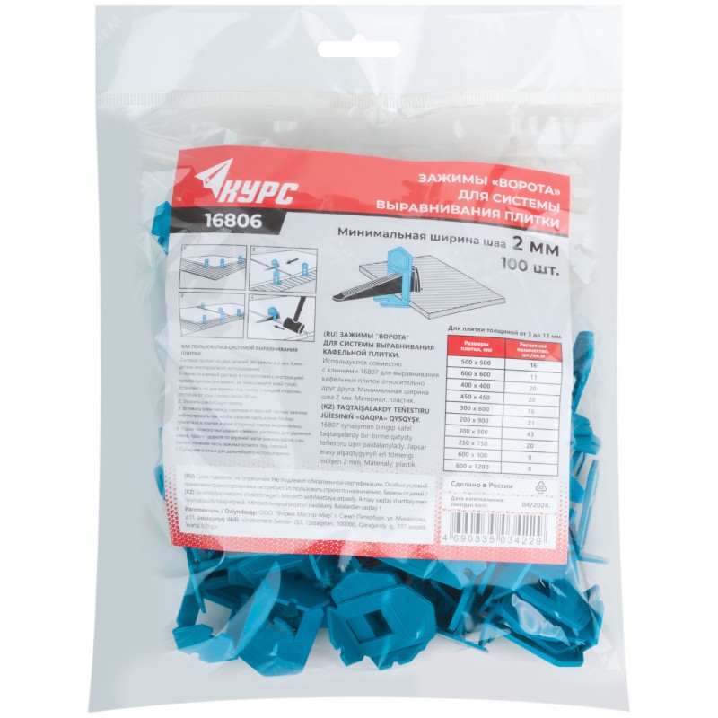 Система Выравнивания Плитки СВП, Зажимы Ворота 100шт., ширина шва 2,0 мм