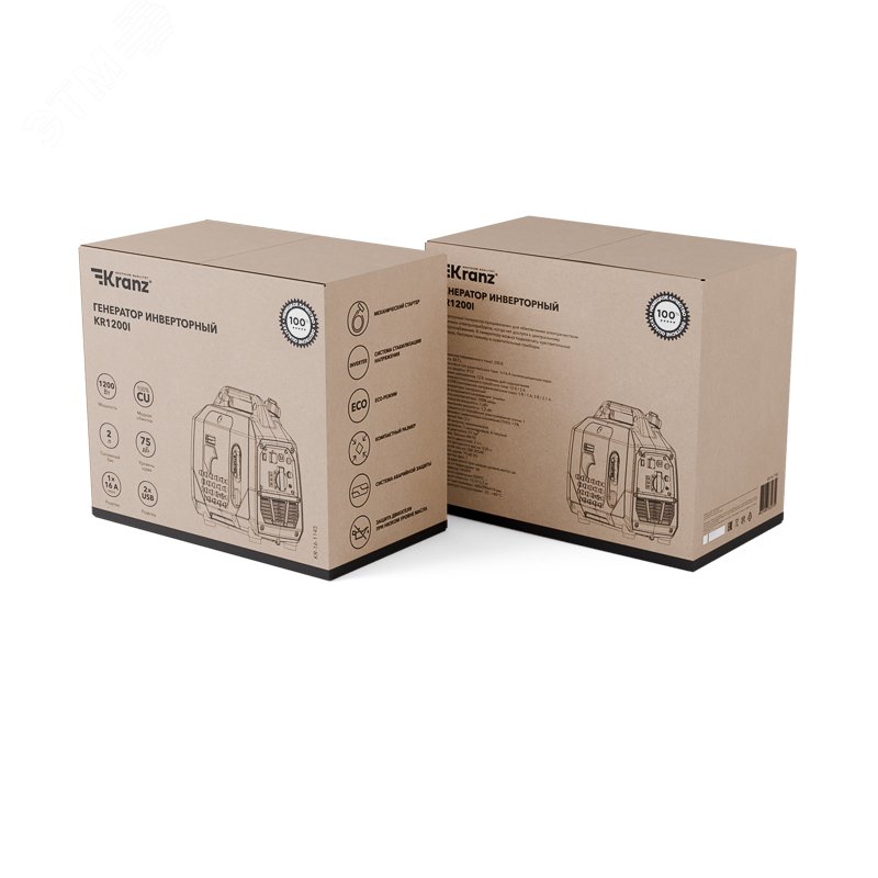 Инверторный генератор KR1200I отличается легкостью, компактностью и простотой переноски, что делает его идеальным выбором для использования во время выездов на природу, рыбалку или пикники. Также генератор будет незаменим на дачном участке или в торговой палатке. Специальный экономичный режим уменьшает расход топлива благодаря точной регулировке подачи в зависимости от нагрузки генератора и электронной системы зажигания. В бензобаке установлен индикатор уровня топлива. Многофункциональный дисплей информативно отображает часы работы, напряжение, частоту тока и предупреждает о низком уровне масла. Низкий уровень шума (60 дБ) достигается благодаря равномерной нагрузке двигателя, закрытому корпусу и шумоизолирующим панелям. Закрытый корпус и стальная усиленная рама эффективно защищают внутренние узлы генератора от механических повреждений и попадания воды. Четырехтактный двигатель (57 см3) работает стабильно и обеспечивает эффективную работу.