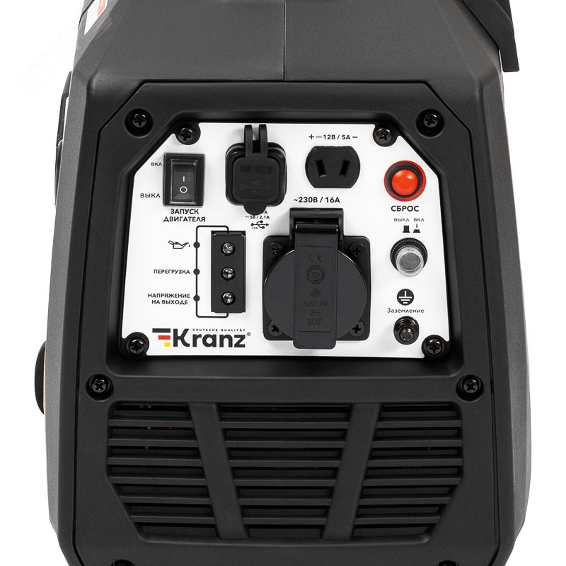 - Преимущества:Экономичный расход - подстраиваемый под нагрузку регулятор оборотов двигателя сокращает расход топлива до 40%|Высокая стабильность напряжения (отклонение от номинального < 3%)|Система аварийной защиты отключит генератор при перегрузке, коротком замыкании или низком уровне масла|100% медная обмотка альтернатора повышает КПД и снижает потери электроэнергии|Низкий уровень шума за счет закрытого корпуса с шумоподавлением и равномерной нагрузки двигателя|Ручка на корпусе для переноски|Варианты выводов питания - евророзетка (230В/16А), 2 USB-порта (5В/1А и 5В/2,1А), терминал постоянного тока (12В/5А)