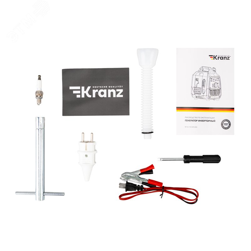 генератор|комплект инструментов|провода с клеммами постоянного тока|пластиковая воронка|руководство по эксплуатации|упаковка