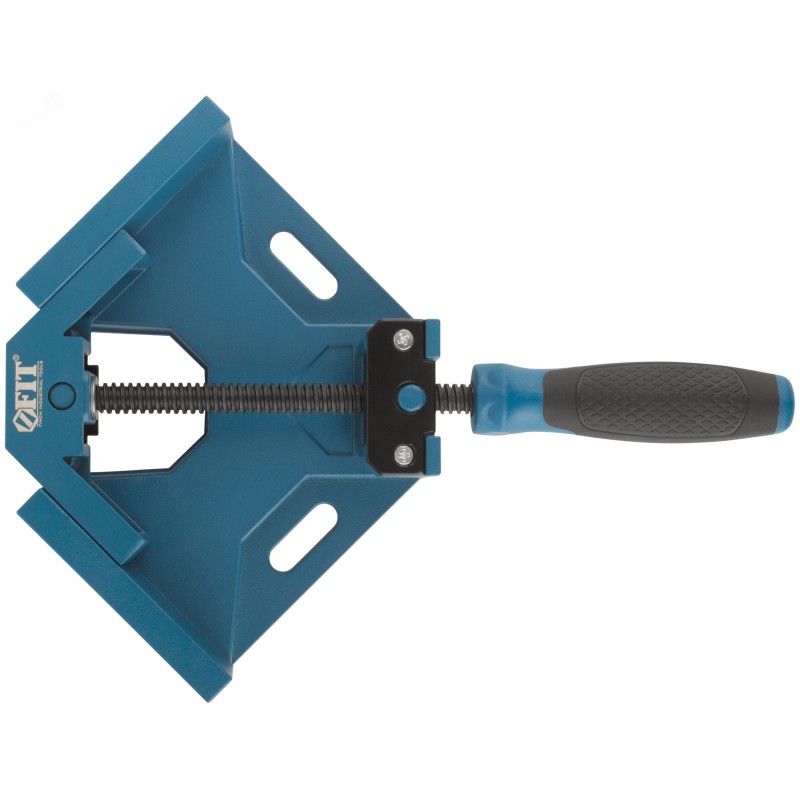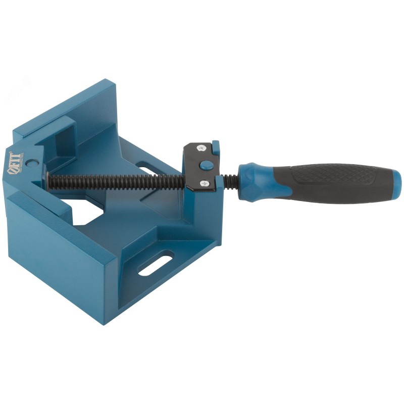 Струбцина угловая усиленная FIT IT предназначена для фиксации изделий под углом 90 градусов. Максимальная ширина зажимаемых изделий 70 мм. Ребра жесткости на обратной стороне струбцины повышают прочность конструкции. Эргономичная противоскользящая прорезиненная рукоятка обеспечивает надежный хват. Корпус струбцины изготовлен из цельнолитого алюминия, сочетающего в себе высокую прочность и малый вес. Пазы в корпусе струбцины дают возможность стационарной установки. Черное покрытие винта предотвращает коррозию.