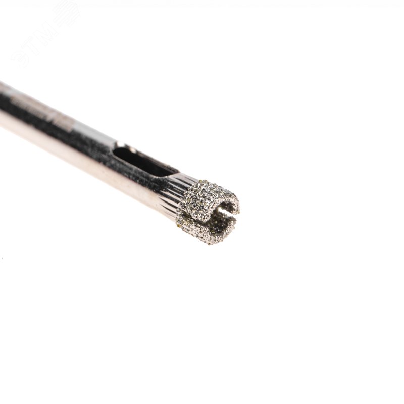 - Преимущества:Равномерное распределение алмазов по режущей кромке обеспечивает аккуратное сверление материала без трещин и сколов|Большой ресурс благодаря высокой статической и динамической прочности алмазов|Цилиндрический хвостовик для надежного крепления в патроне