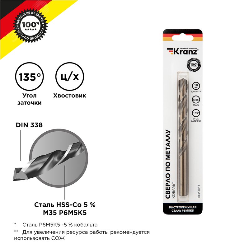 - Дополнительная информация:подходит для сверления стали, чугуна, нержавеющей стали, легированных и цветных металлов
