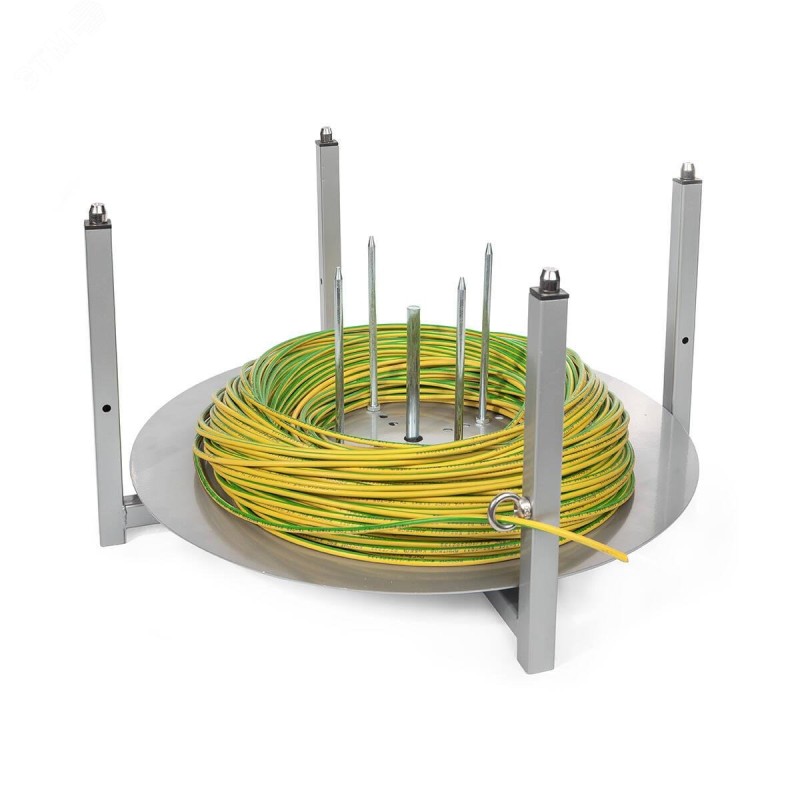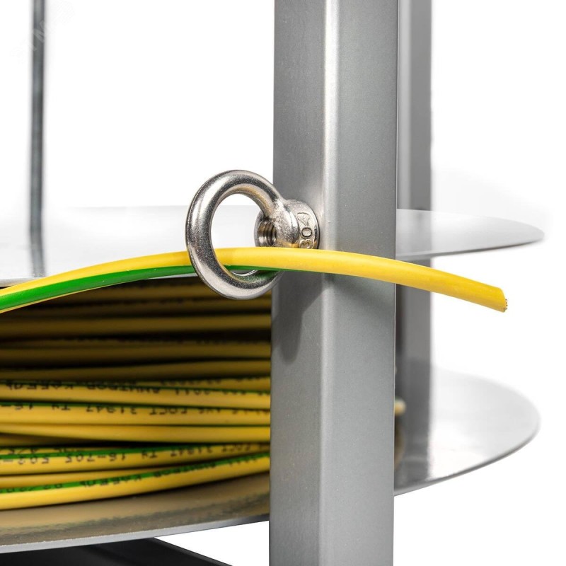 Устройство предназначено для размотки гибких проводов и термоусадочных кембриков из бухт. Максимальный диаметр бухты – 480 мм. Максимальная высота бухты – 150 мм. Внутренний диаметр бухты – 80-230 мм. Регулировочные стержни для фиксации бухты на диске в зависимости от внутреннего диаметра. Опорные профили с роликами для наиболее легкого вращения дисков. Рым-болт с кольцом для подачи провода при размотке. Два варианта сборки устройства – стойками вверх, стойками вниз (с возможностью крепежа к рабочему столу).