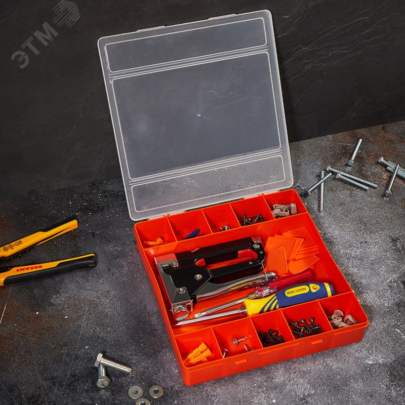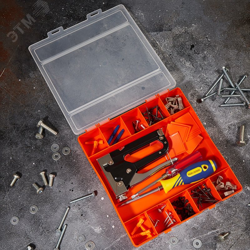 - Преимущества:Полупрозрачная крышка позволяет сразу увидеть необходимый инструмент|Подходит для домашнего и профессионального использования|Выполнен из прочных долговечных материалов|Множество отсеков для распределение мелких предметов