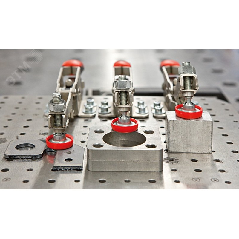 - Преимущества:Быстрая готовность к использованию – с самого начала и после смены детали|Конструктивный типоразмер прижимного приспособления заменяет целый ряд типоразмеров конкурентов|Даже чувствительные детали, например, шпонированные или окрашенные поверхности, прижимаются в щадящем режиме|Рычаг в положении зажима расположен горизонтально|Автоматическая плавная подстройка высоты зажима до 35мм при сохранении зажимного усилия без ручной регулировки|Настройка зажимного усилия до 2500Н с помощью установочного винта на шарнире|Прочная конструкция из улучшенного металла для большого срока службы