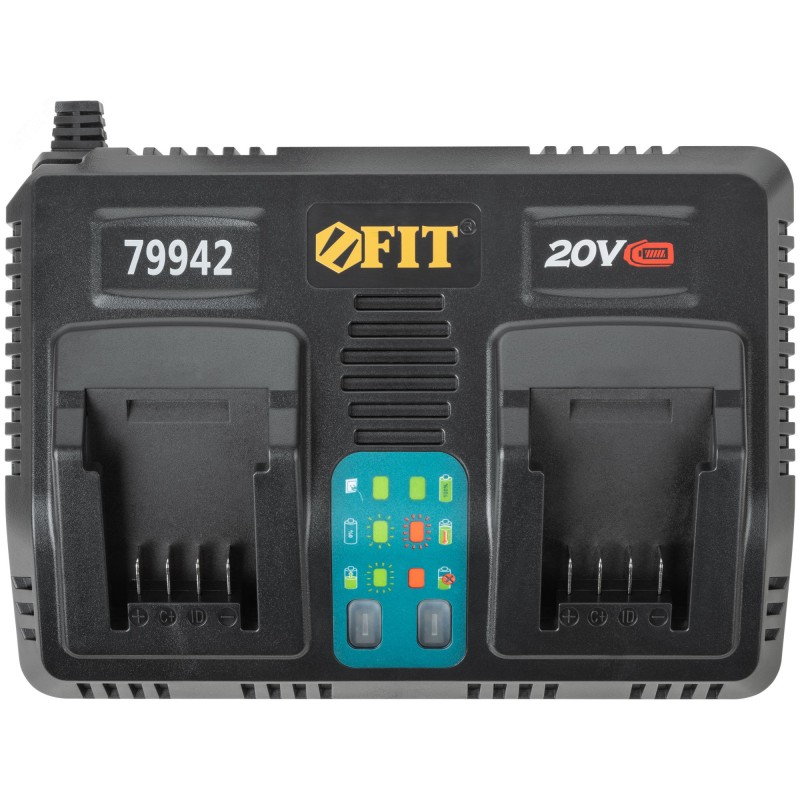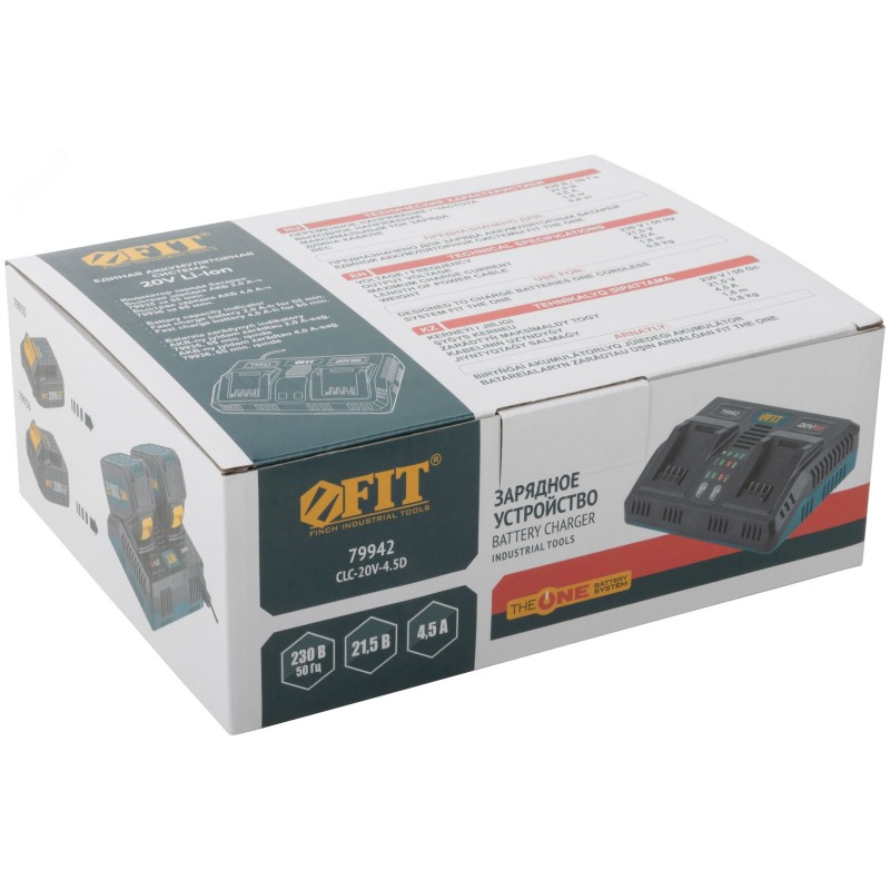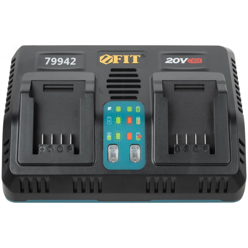 Зарядный пост на два слота, предназначен для ускоренной зарядки аккумуляторных батарей единой аккумуляторной системы FIT THE ONE. Оснащен индикаторами включения в сеть, исправности батареи, процесса зарядки батареи, перегрева батареи. Поставляется в картонной коробке.
