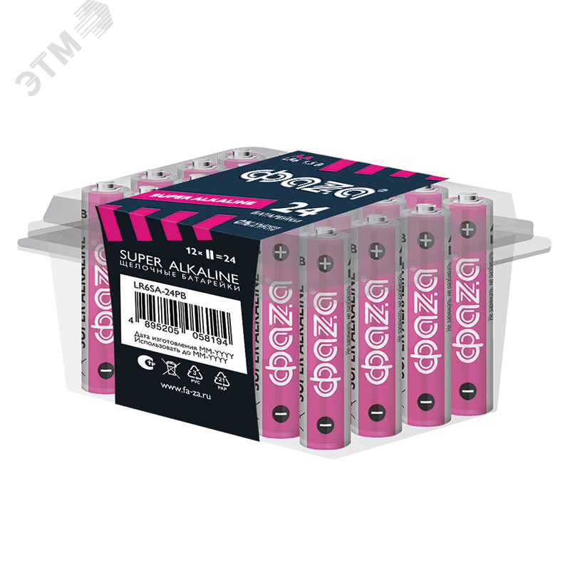 ФАZА LR6 Super Alkaline PB-24 - Надёжные батарейки для повседневной электроники. Тип элемента питания LR6 (AA) — универсальное решение для широкого спектра бытовых приборов и гаджетов. Super Alkaline Technology — высокая ёмкость и стабильная работа даже при высоких нагрузках. Отличаются длительным сроком хранения и сохранением заряда при длительном хранении. Подходят для пультов дистанционного управления, детских игрушек, фонарей, цифровых камер и другой мелкой бытовой техники. Приобретая батарейки FAZA LR6 Super Alkaline PB-24, вы получаете уверенность в работе ваших любимых устройств.