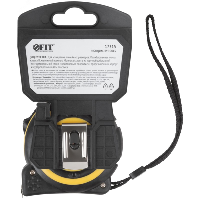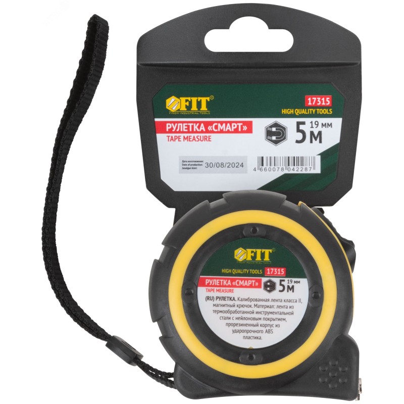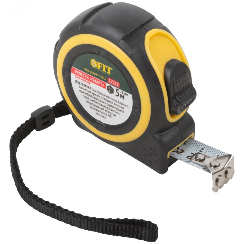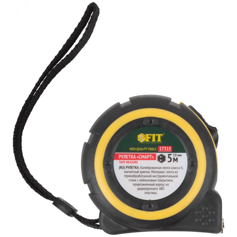 "Рулетка ""Смарт"", калибр.лента, нейлон.покр., магн.крючок, прорезиненный корпус 5 м х 19 мм"