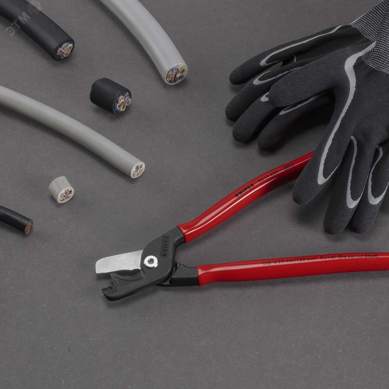 - Преимущества:Простое управление одной или двумя руками с минимальным раскрытием рукоятки для кабелей большого диаметра|Регулируемый болтовой шарнир с высоким рычажным усилием обеспечивает точную и плавную резку|Тонкая головка для облегчения доступа|Защита от защемления пальцев|Не подходит для кабелей, армированных сталью, например сталеалюминиевого провода|Режущие кромки дополнительно закалены лазером, твердость режущей кромки составляет прибл. 56 HRC