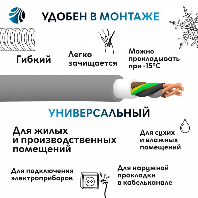 - Расцветка провода:Серый