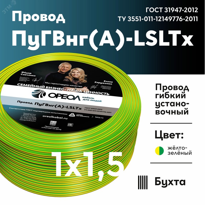 - Модель:Провод силовой ПуГВнг (А)-LSLTx 1х1.5жел