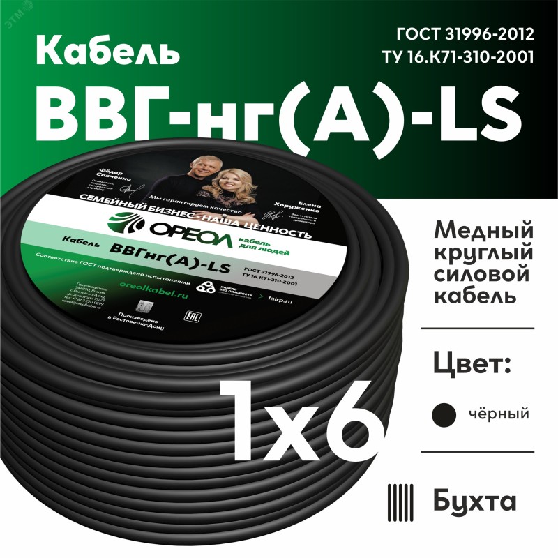 - Модель:Кабель ВВГнг (А) LS 0,66 1х6 ж-зеленый