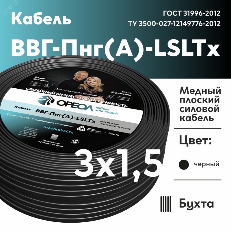 - Модель:ВВГнг LS LTx 3х1,5 (А) пл