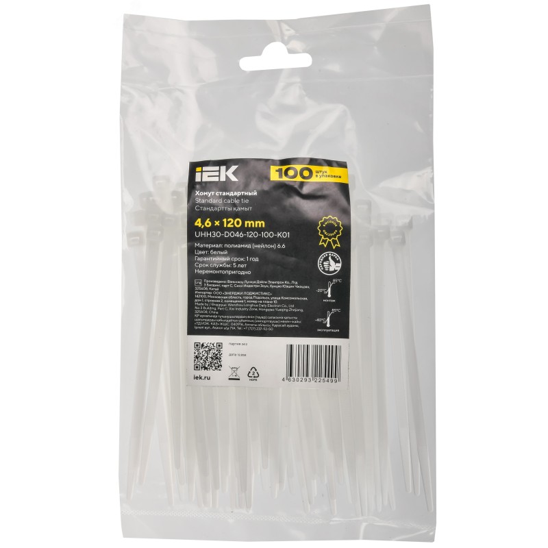 Хомуты стандартные предназначены для эффективной и безопасной фиксации кабелей и проводов в единый пучок, предотвращая их смещение и запутывание. Высокая прочность изделий и устойчивость к воздействию масел, смазок, растворителей позволяет применять их в различных условиях и температурных режимах. В ассортименте 3 цвета - белый, чёрный и серый.