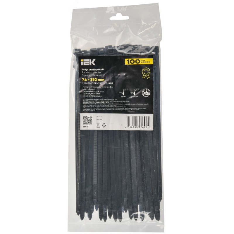 Хомуты стандартные предназначены для эффективной и безопасной фиксации кабелей и проводов в единый пучок, предотвращая их смещение и запутывание. Высокая прочность изделий и устойчивость к воздействию масел, смазок, растворителей позволяет применять их в различных условиях и температурных режимах. В ассортименте 3 цвета - белый, чёрный и серый.