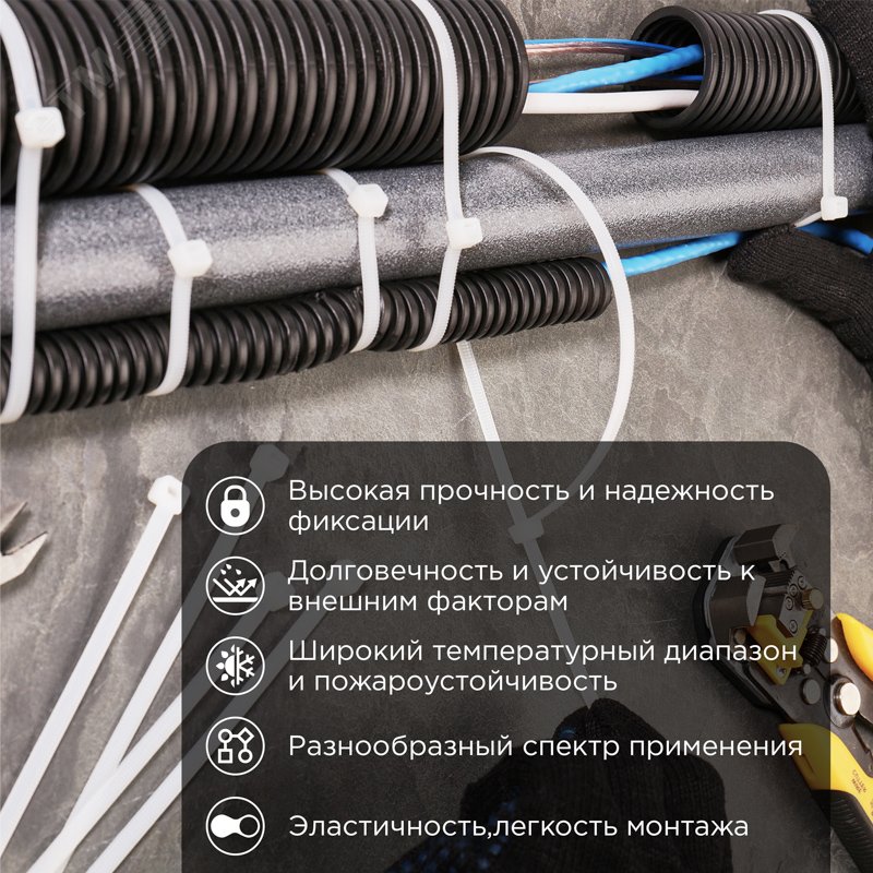 - Комплектация:нейлоновый хомут – 100 шт.|упаковка