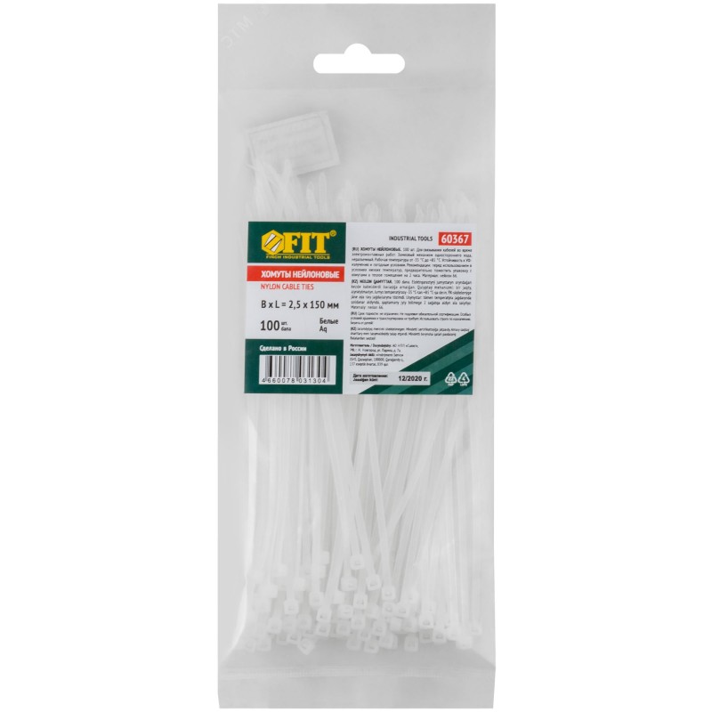 Хомуты нейлоновые для проводов, белые 100 шт., 2,5х150 мм