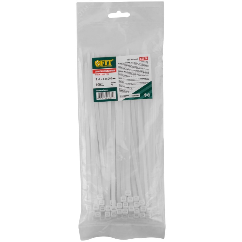 Хомуты нейлоновые для проводов, белые 100 шт., 4,8х200 мм