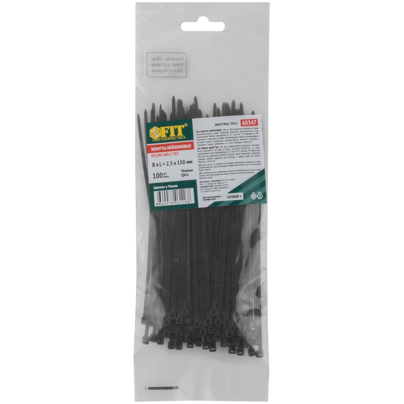 Хомуты нейлоновые для проводов, черные 100 шт., 2,5х150 мм