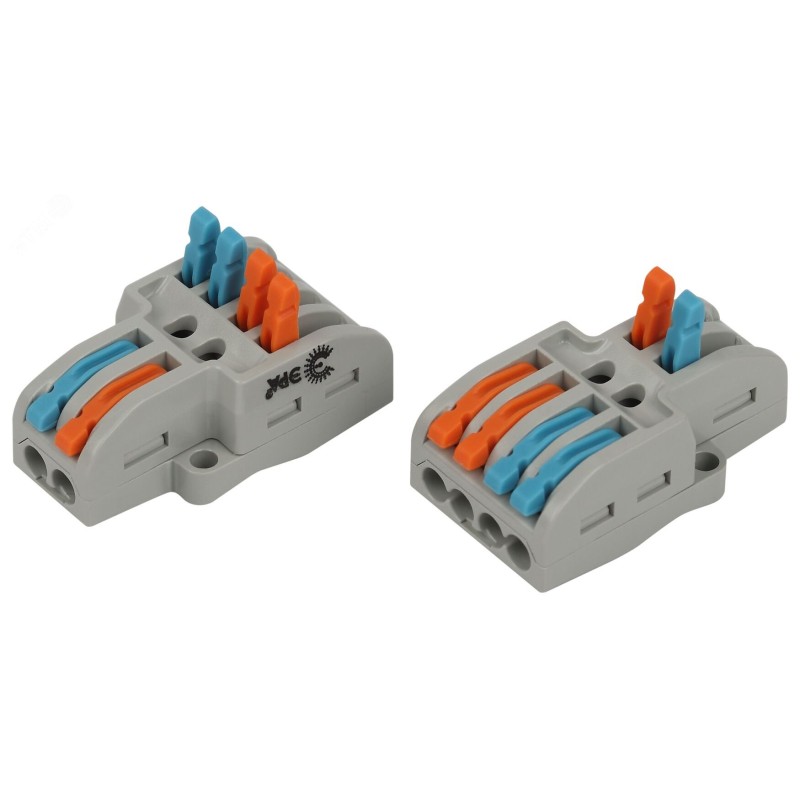 - Преимущества:Позволяет создать безопасное разветвлённое проходное соединение|Дает возможность легко и быстро отсоединить провода, изменить схему, переключить питание на другую цепь или устройство|Позволяет оперативно соединять или наращивать провода, сделанные из разных материалов и разного сечения|Обеспечивает многоразовый монтаж и демонтаж всех типов медных проводников сечением до 4.0 мм2: одножильных, многожильных и тонкопроволочных|В конструкции корпуса предусмотрены выступы с крепежными отверстиями для установки на плоскую поверхность|Исходное положение рычага исключает случайное разъединение подключённого проводника|Изделия обладают тестовыми отверстиями, которые дают возможность измерения электрических параметров цепи соединения|Корпус выполнен из полиамида 6.6. Не поддерживает горение, не содержит галогенов по UL94V4