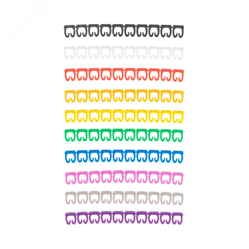 Маркер кабельный 0-9 комплект в блистере (от 4 до 6 мм) REXANT предназначен для маркировки проводов и кабеля в распределительных щитах. Изготавливается из эластичного и негорючего поливинилхлорида, с отверстием для проводника. Облегчают идентификацию проводов в процессе монтажа и демонтажа проводки , помогут определить группу кабелей и источников при обслуживании и диагностике. Рабочая температура не должна превышать 85 градусов. Благодаря специальной эластичной форме каждый маркер надежно фиксируется на проводах с сечением в диапазоне (от 4 до 6 мм). Каждая цифра имеет свой цвет (черный, коричневый, красный, оранжевый, желтый, зеленый, синий, фиолетовый, серый, белый). Маркеры соединяются между собой с помощью зубцов и пазов.
