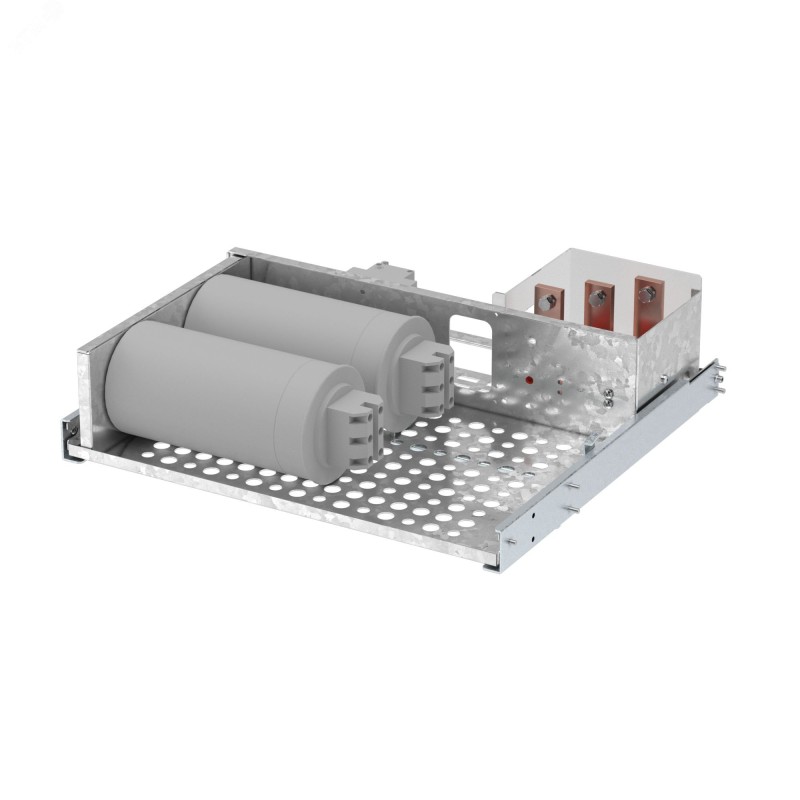 Комплект выкатного варианта отсека для организации встроенного решения УКРМ максимальной мощностью до 50 кВАр. Подходит для напольных шкафов CQE N шириной 600 и высотой 300 мм. Глубина отсека в 500 мм позволяет установить его в шкаф одностороннего или двухстороннего обслуживания глубиной от 600 мм.