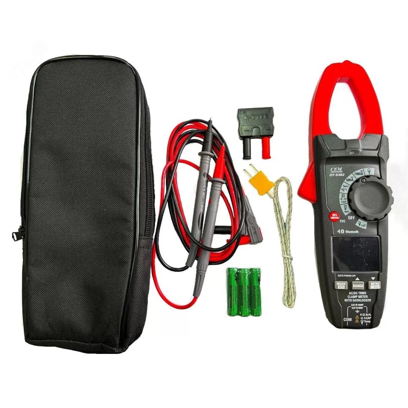 прибор DT-9382 токоизмерительные клещи – 1 шт|чехол – 1 шт|термопара – 1 шт|переходник для подключения термопары – 1 шт|щупы|батарейки 1,5В (ААА) – 3 шт|инструкция по эксплуатации – 1 шт