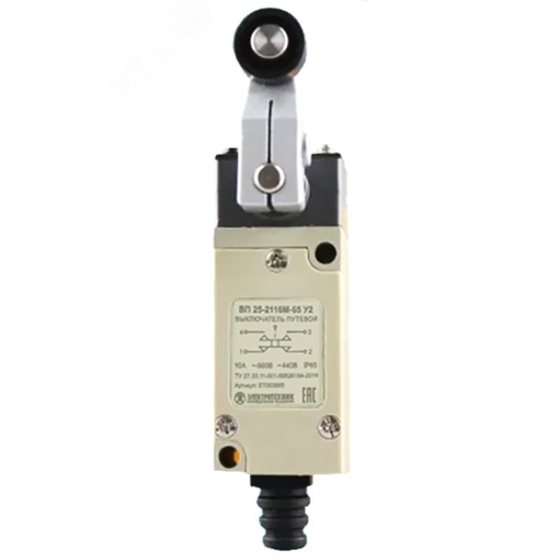 Выключатель путевой ВП 25-2118 М-65 У2, рычаг с пластиковым роликом, 1з+1р, безынерционный, 21х56 мм, 3А, IP65