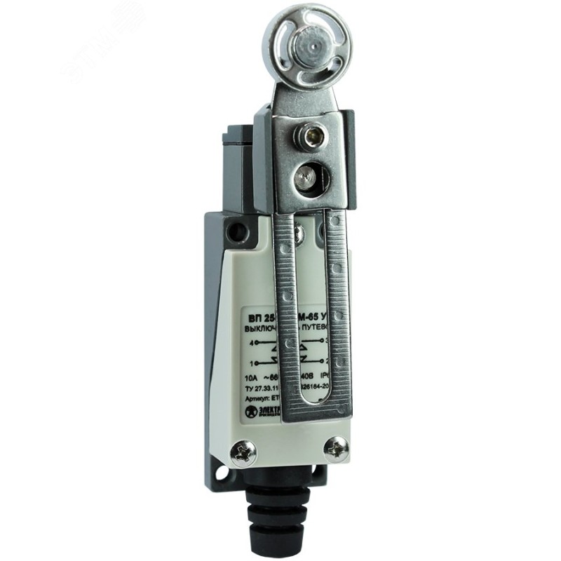 Выключатель путевой ВП 25-2143 М-65 У2, рычаг со стальным роликом, регулируемый по длине, 1з+1р, безынерционный, 21х56 мм, 3А, IP65